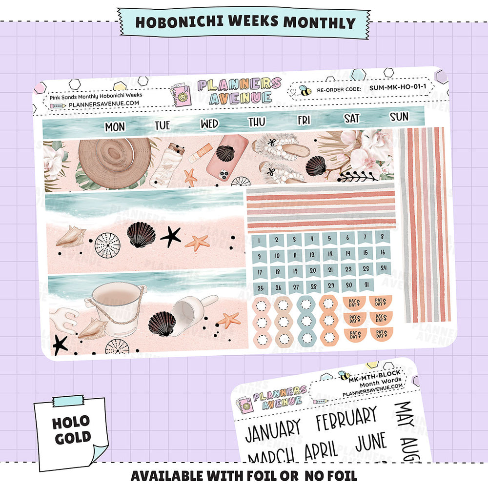 Pink Sands Hobonichi Monthly Sticker Foiled Kit (HOLO GOLD FOIL)