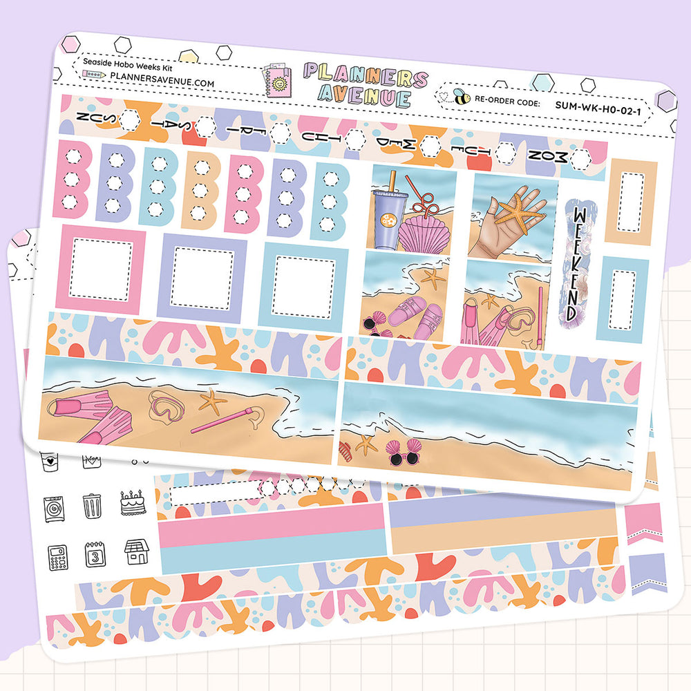 Seaside Hobonichi Weeks Sticker Foiled Kit is perfect for decorating the weekly view in your Hobonichi week's planner or other similar planner sizes such as Lime weeks and Mini Mallow planner.