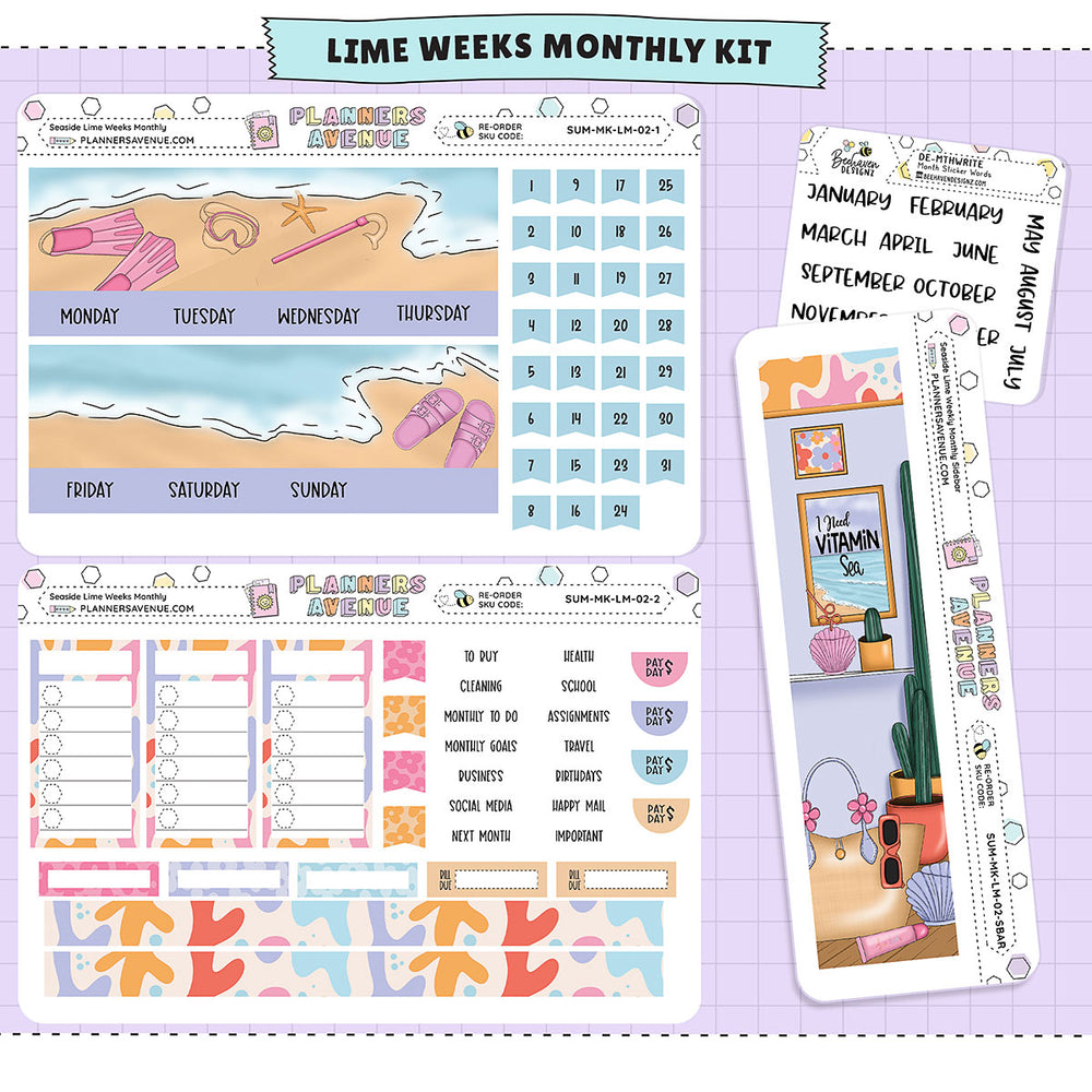 Seaside Lime Monthly Sticker Foiled Kit is perfect for decorating the monthly view in your A5 Lime Weekly Planner or other similar planner layouts.