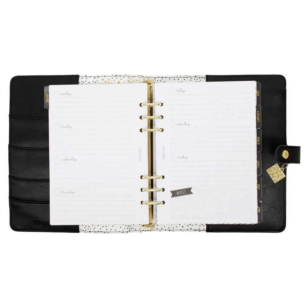 The best part? All Carpe Diem planners are undated, this means you can start your planning at any time of the year with no restrictions, simply re-arrange the inserts for optimum organization.