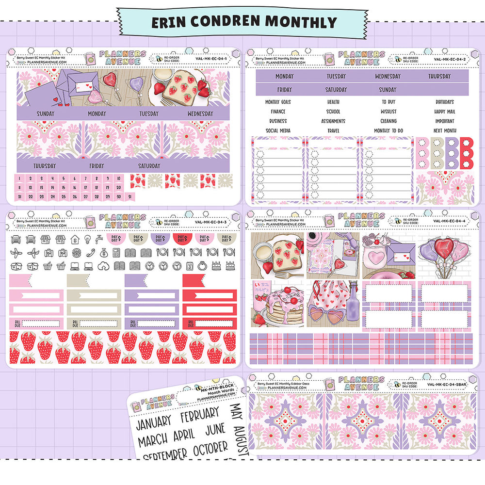 Berry Sweet Erin Condren Monthly Sticker Foiled Kit is perfect for decorating the monthly view in your Erin Condren LifePlanner or other similar 7x9 planner layouts.