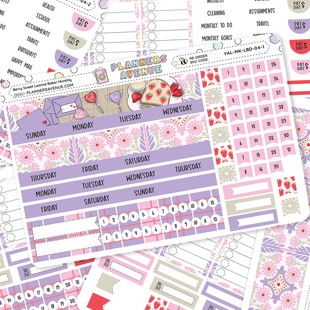 Berry Sweet Leanne Baker Monthly Sticker Foiled Kit is perfect for decorating the monthly view in your Leanne Baker Weekly planner or other A5-sized planners.