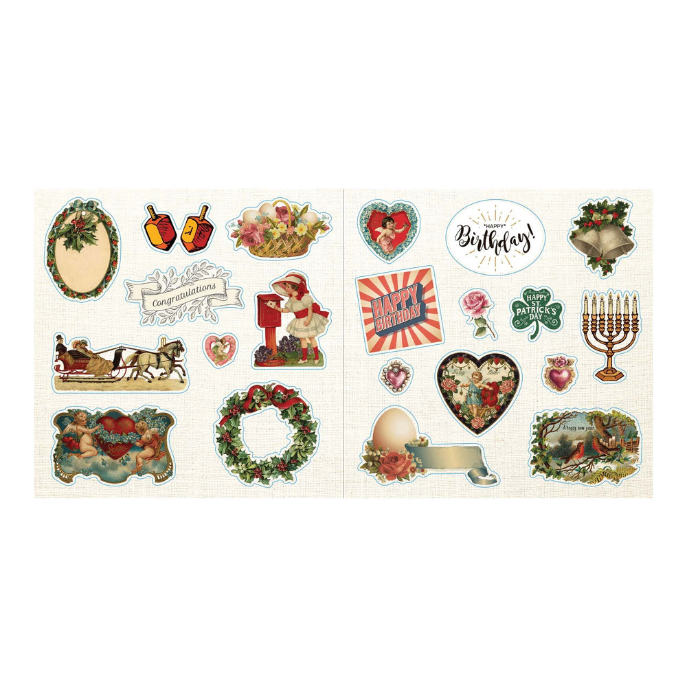 - 50-page deluxe sticker book with more than 500 vintage stickers.