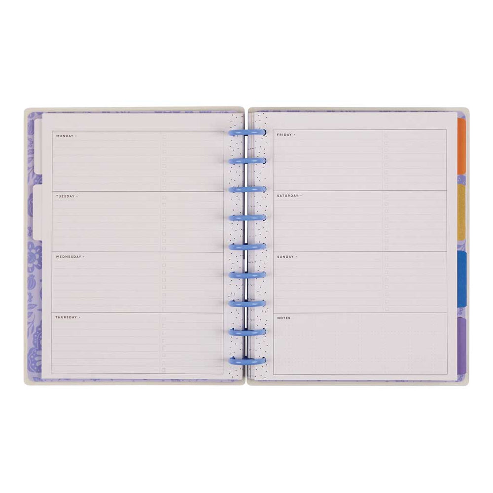 The Happy Planner disc-bound system allows you to add/remove pages and personalize them with snap-in accessories.