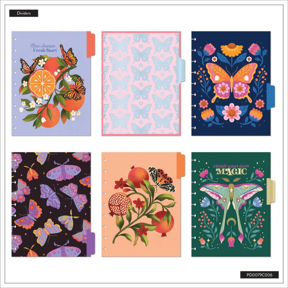 Create your magic with this Happy Planner Mystic Blooms Classic 12-Month Undated Planner. This classic-sized horizontal planner includes undated weekly and monthly calendar spreads and 12 dividers with designs featuring bold colors, botanical accents, and a mystical vibe.