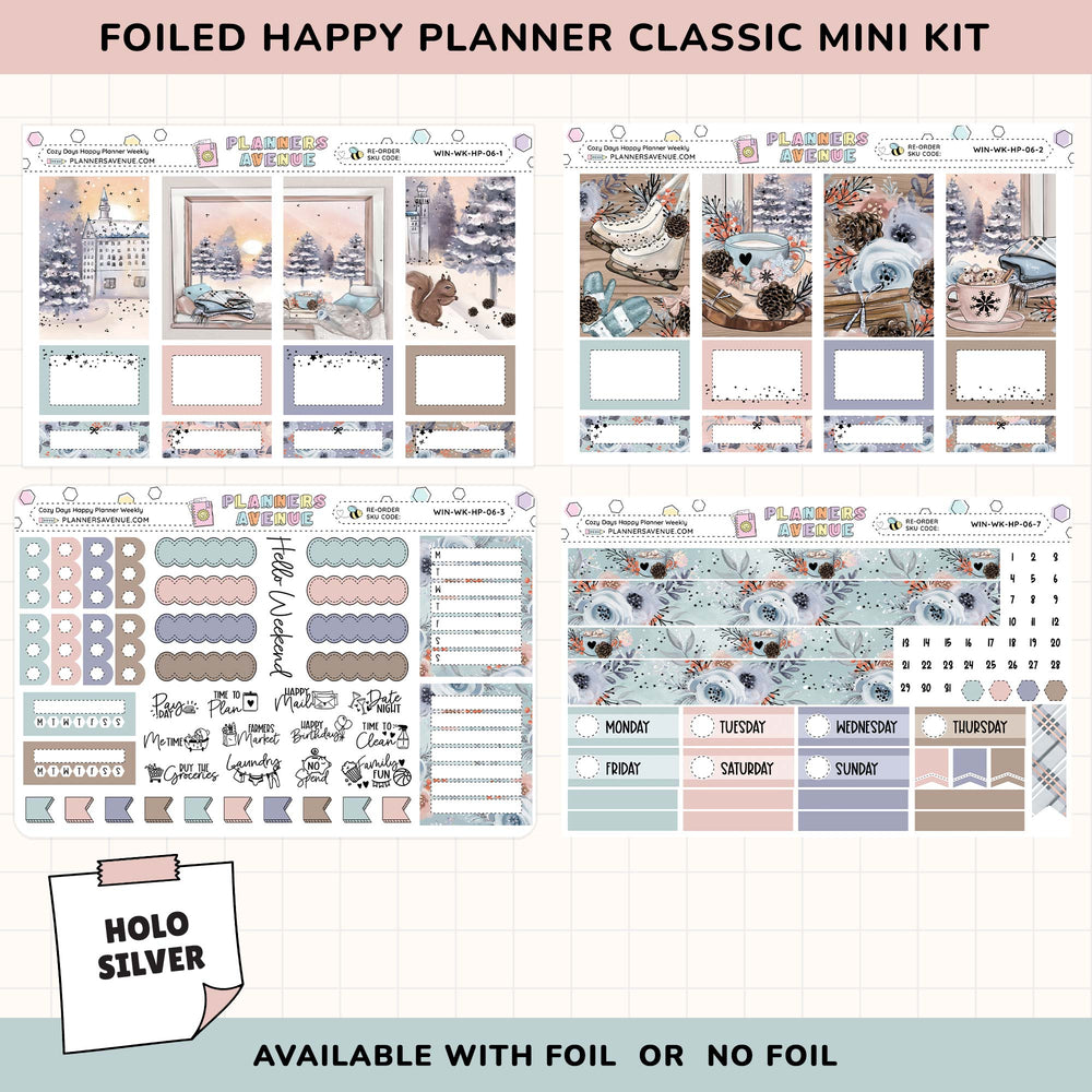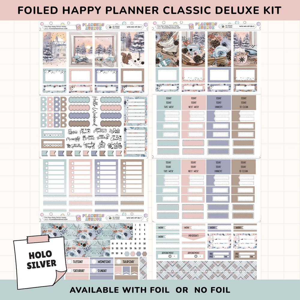 Cozy Days Happy Planner Weekly Sticker Foiled Kit (HOLO SILVER FOIL) - Happy Planner Weekly Kit / NO Foil -- Made To Order will ship when stock available