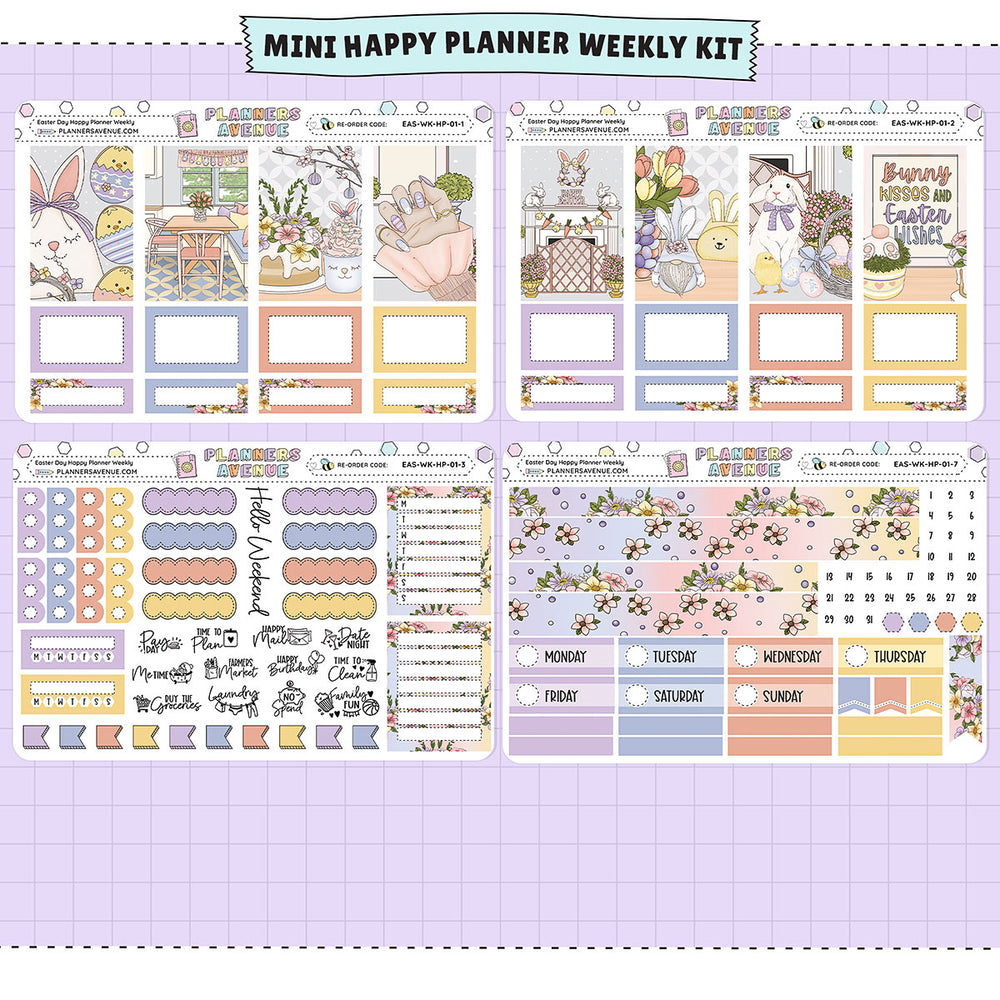 Easter Day Happy Planner Weekly Sticker Foiled Kit is perfect for decorating the weekly view in your classic Happy Planner or other similar planner layouts.