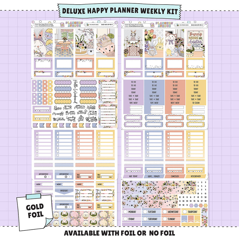 Easter Day Happy Planner Weekly Sticker Foiled Kit (GOLD FOIL) - Happy Planner Weekly Kit / NO Foil -- Made To Order will ship when stock available