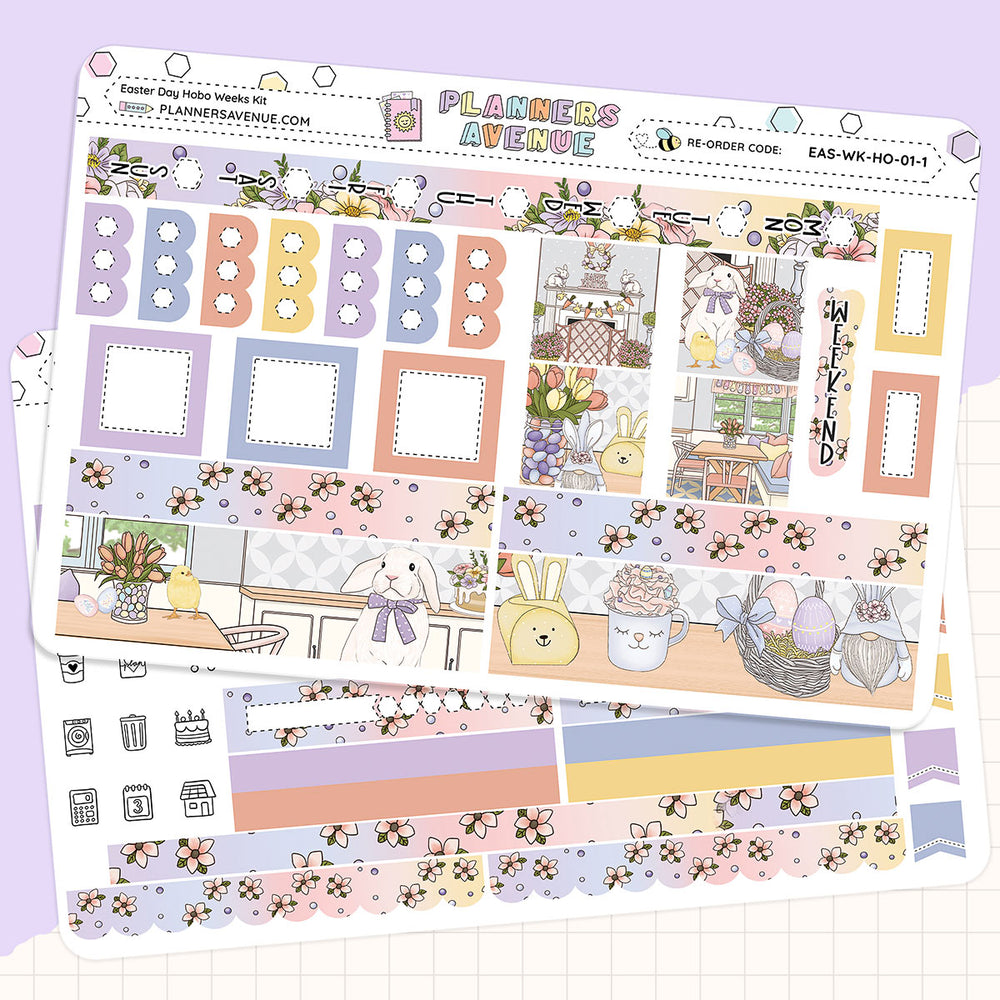 Easter Day Hobonichi Weeks Sticker Foiled Kit is perfect for decorating the weekly view in your Hobonichi week's planner or other similar planner sizes such as Lime weeks and Mini Mallow planner.