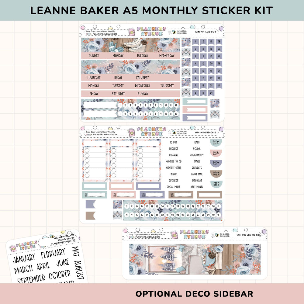 Cozy Days Leanne Baker Monthly Sticker Foiled Kit (HOLO SILVER FOIL) - Leanne Baker Monthly Kit - No Deco Sidebar / NO Foil -- Made To Order will ship when stock available
