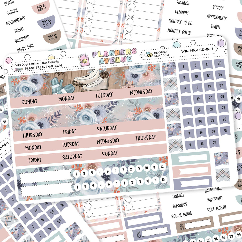 Cozy Days Leanne Baker Monthly Sticker Foiled Kit is perfect for decorating the monthly view in your Leanne Baker Weekly planner or other A5-sized planners.