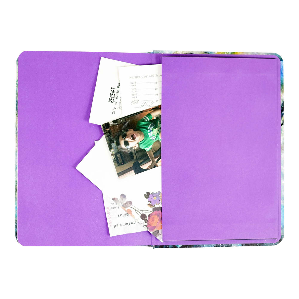 - Tuck notes, mementos, and more in the pocket inside the back cover.